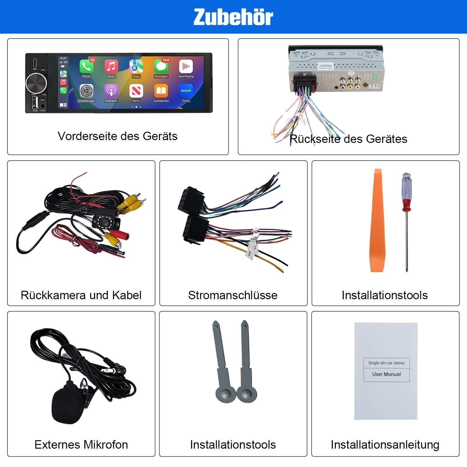 6,3-Zoll Apple CarPlay & Android Auto HD-Display mit Rückfahrkamera, Touchscreen, Bluetooth 5.0