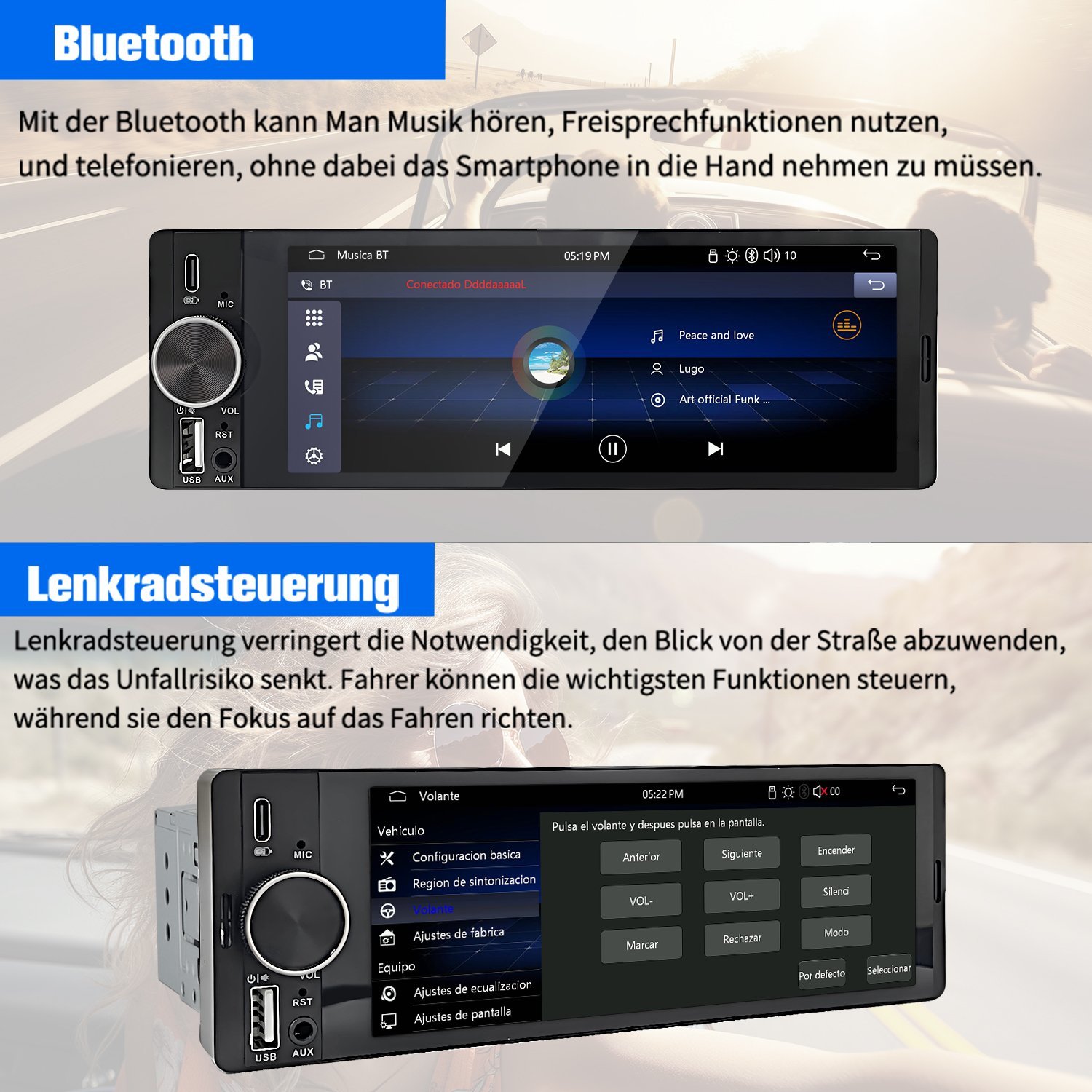 Universal Android Radio 1Din Carplay Autoradio Bluetooth Eingebaute Mikrofon RDS Type-C AUX RDS mit Rückfahrkamera