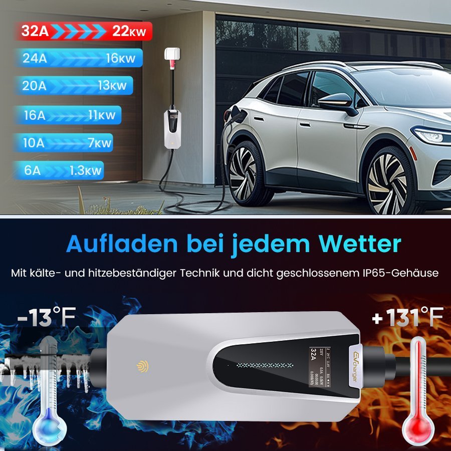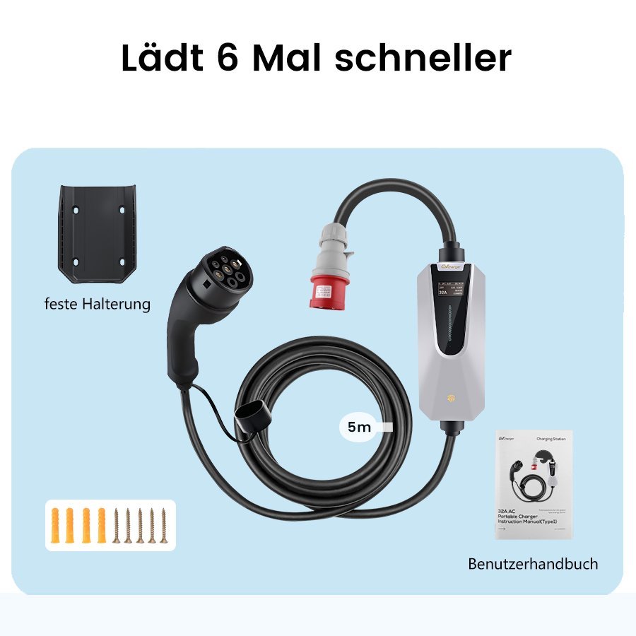 Junsun E-Auto Ladegerät Elektroauto EV-Ladekabel 22KW Typ 2 6-32A