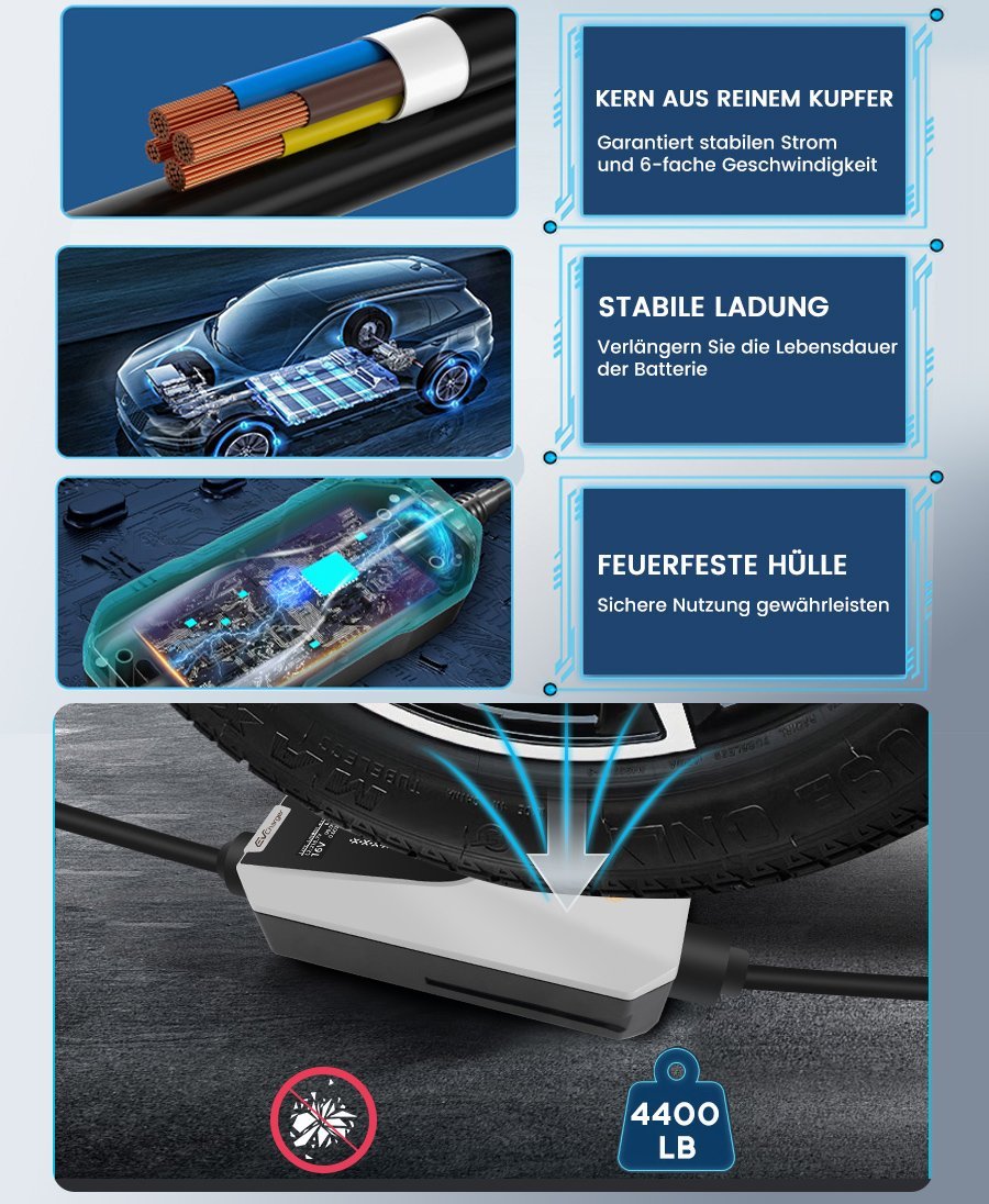 Junsun EV-Ladekabel E-Auto Ladegerät 3.5KW/7KW/11KW Typ 2 6-16A/32A