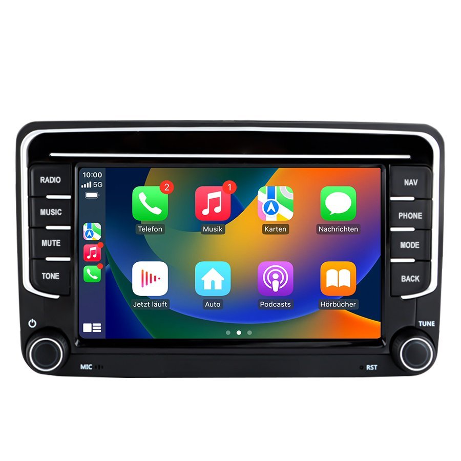 Modernes Android Autoradio mit kabellosem CarPlay, GPS, DAB+ Unterstützung, Bluetooth 5.0 und OEM-Kompatibilität – die perfekte Multimedia-Lösung für zahlreiche VW & Skoda Modelle.