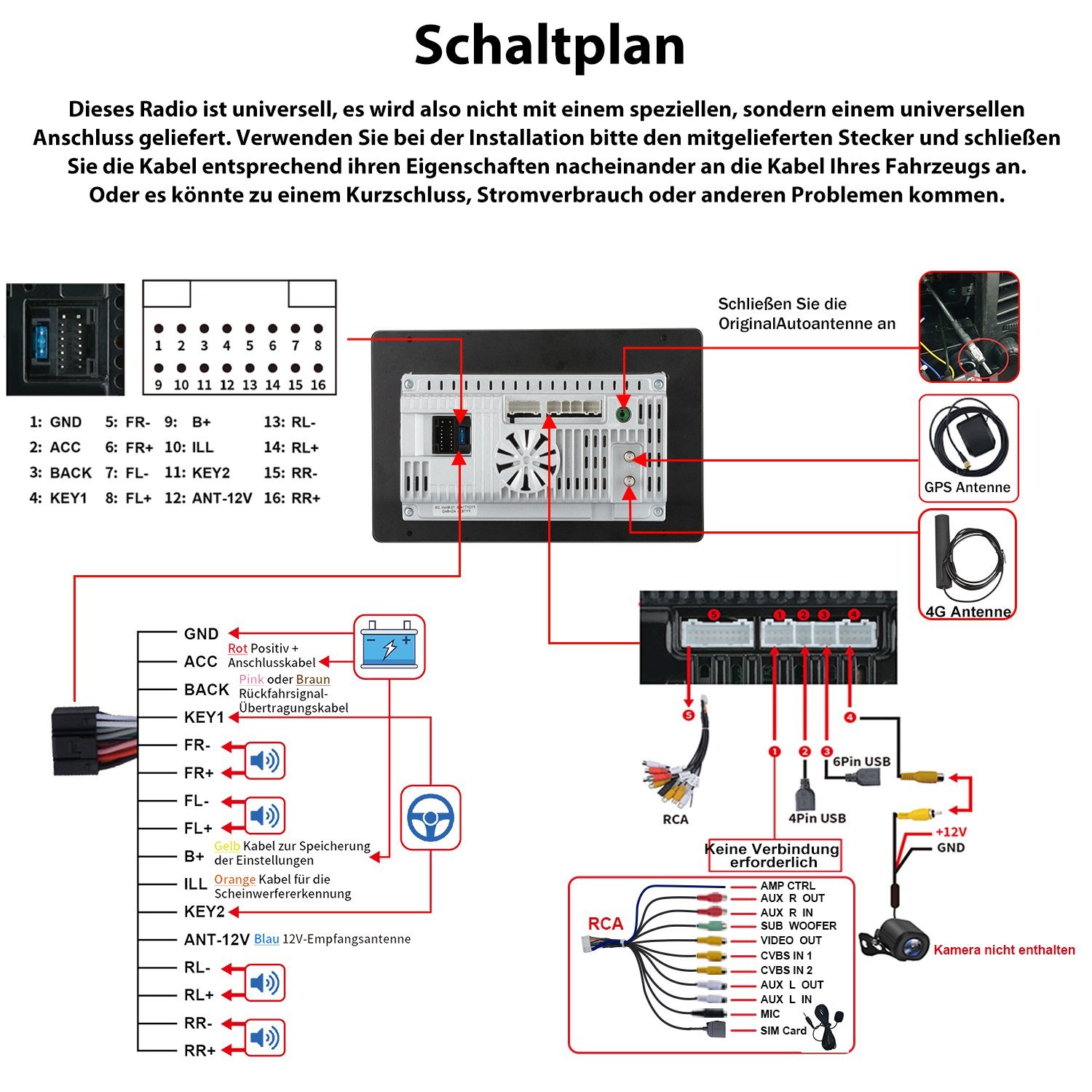 Rückfahrkamera: unterstützt OEM und Zubehör-Kameras
