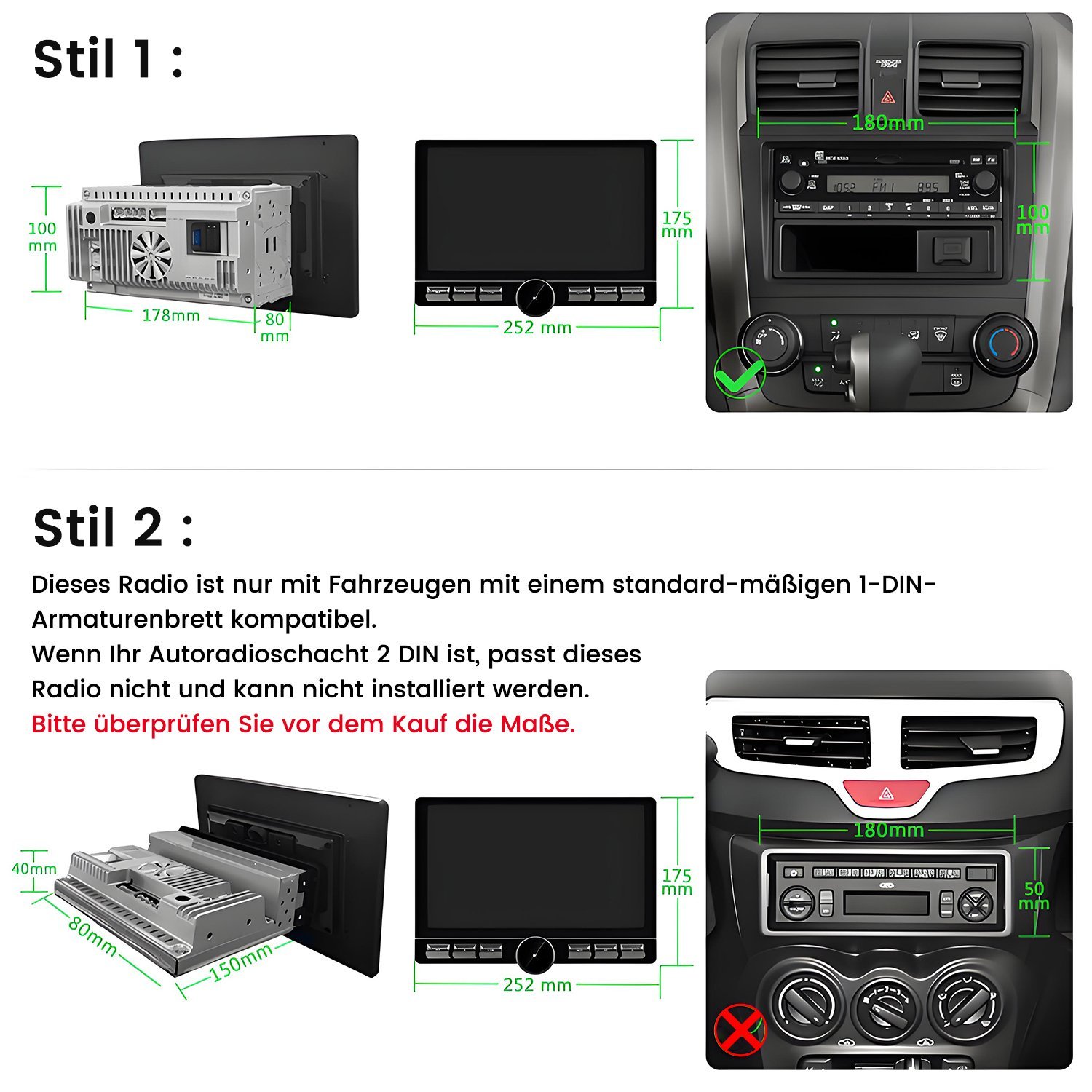 2-DIN Einbaugröße: Manuell Installation